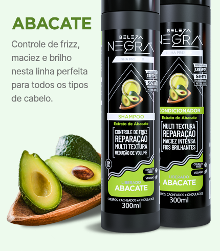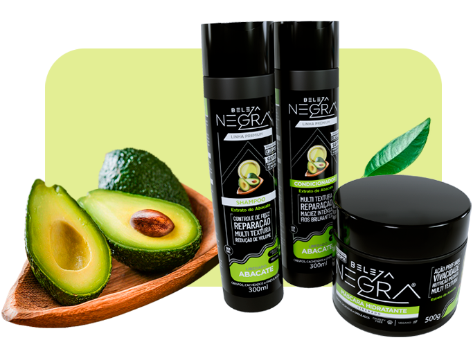Rico em vitaminas A, D e E, o extrato de abacate hidrata profundamente, nutre os fios e melhora a elasticidade. Ideal para cabelos ressecados, ajuda a controlar o frizz, dar brilho e selar as pontas.